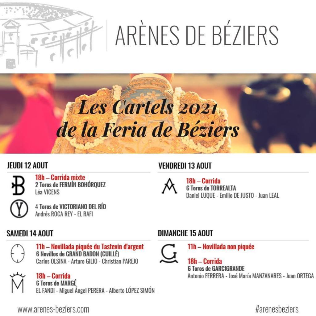 Voici les cartels de la Feria de Béziers 2021 au complet :