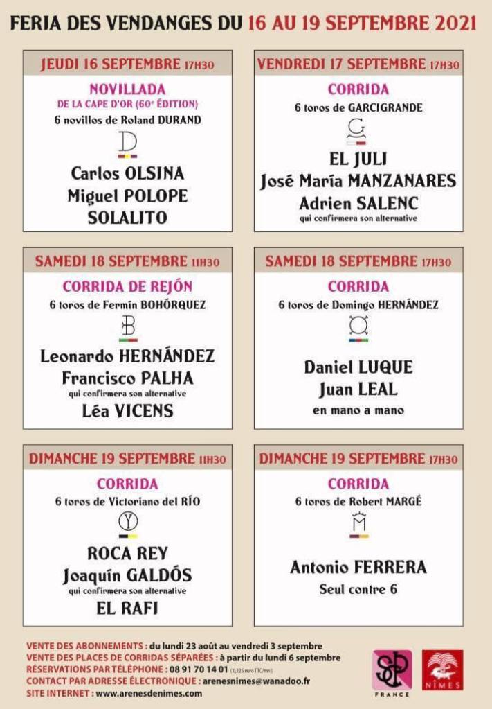 Voici les cartels complet de cette belle Feria de Nîmes :