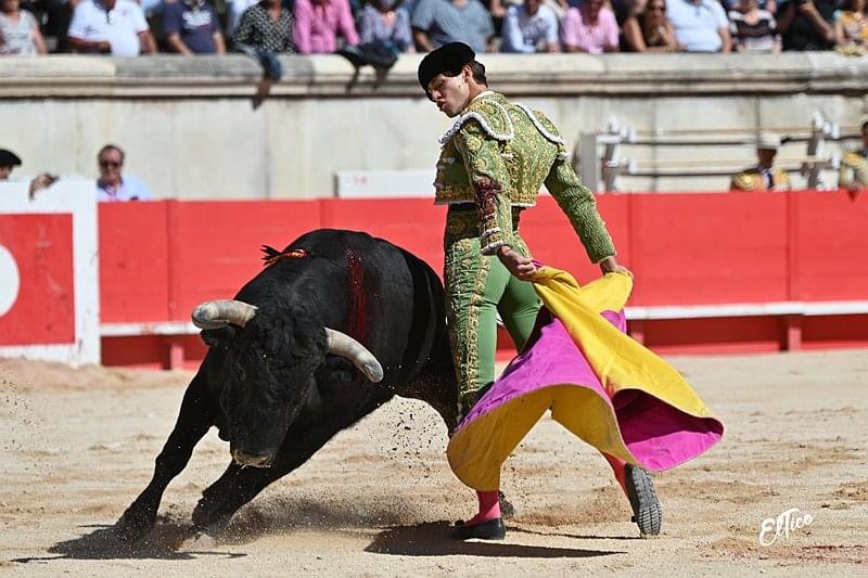 Après avoir reçu une belle ovation a son premier toro, faible et sans transmission, El Rafi a coupé l’oreille de son second adversaire, plus mobile, après un combat souvent gêné par le vent. Une faena volontaire, engagée et pleine d’entrega, conclue près du toril par une belle épée.