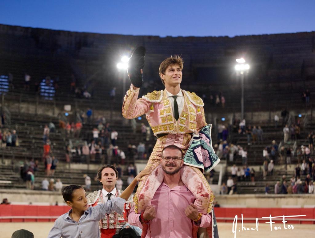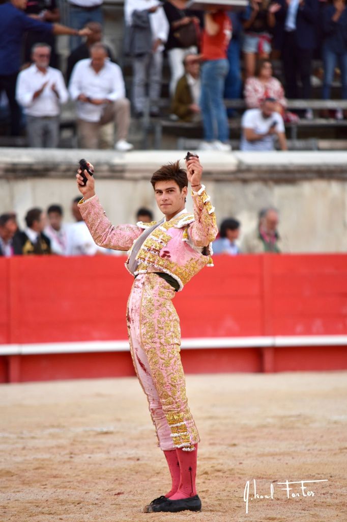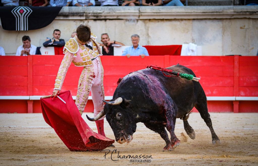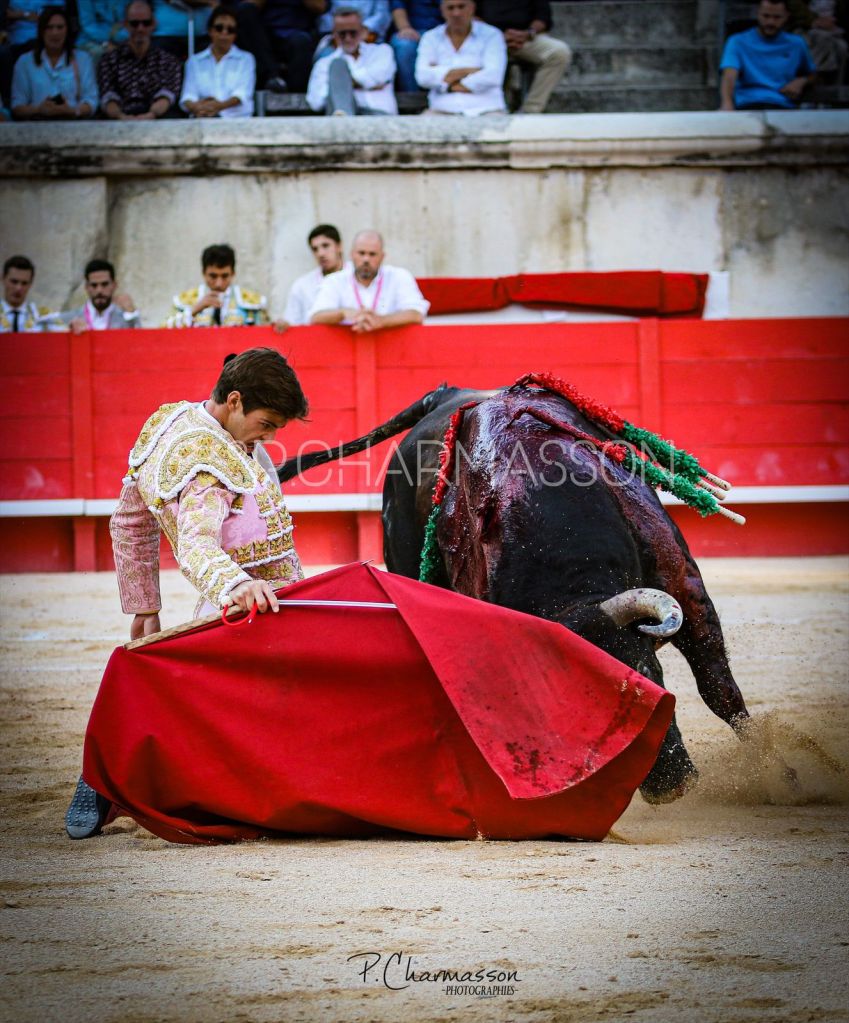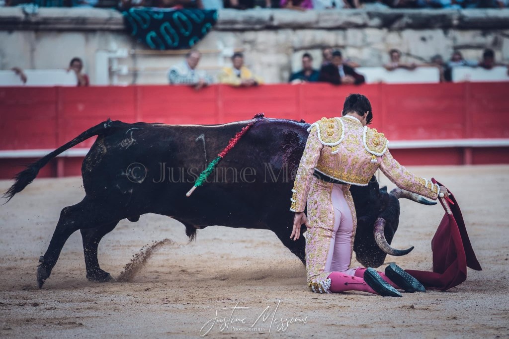 Auteur d’une faena pleine de sentiments débutée à genoux au centre de la piste puis conclue par une belle épée, El Rafi a montré détermination, courage, entrega et une volonté de triompher une nouvelle fois dans ses Arènes de Nîmes. Le public conquis a unanimement demandé les 2 oreilles.