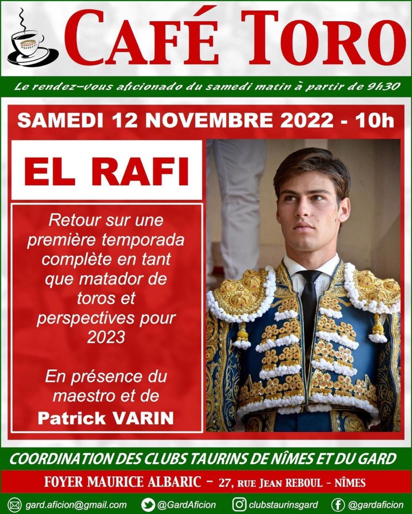 El Rafi était l’invité d’un Café Toro très intéressant qui s’est déroulé samedi 12 novembre, au siège de la Coordination des Clubs taurins de Nîmes et du Gard qui pour l’occasion affichait le « No hay billetes ».