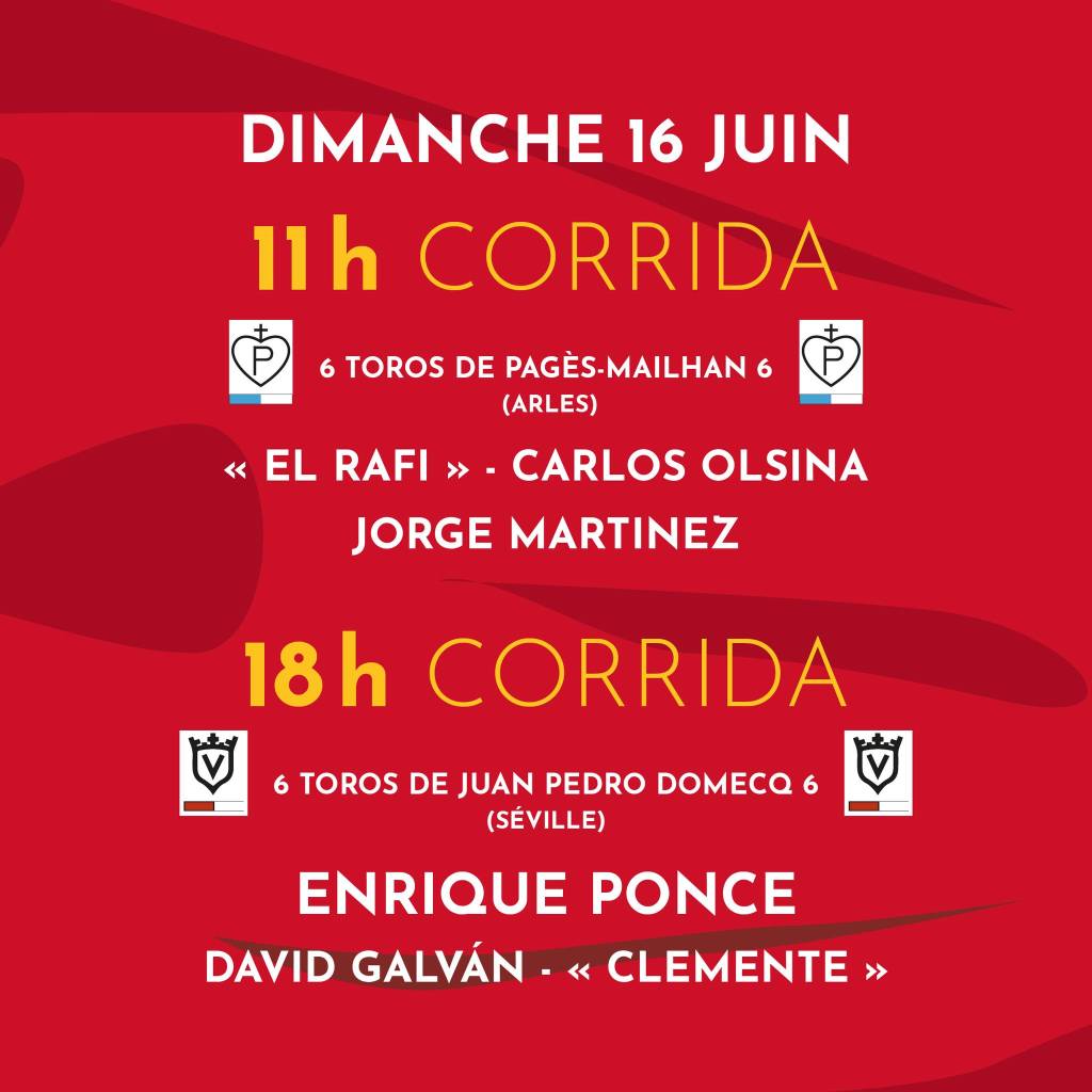 Istres le dimanche 16 juin à 11h : El Rafi, Carlos Olsina et Jorge Martinez face à une corrida de Pagès-Mailhan.