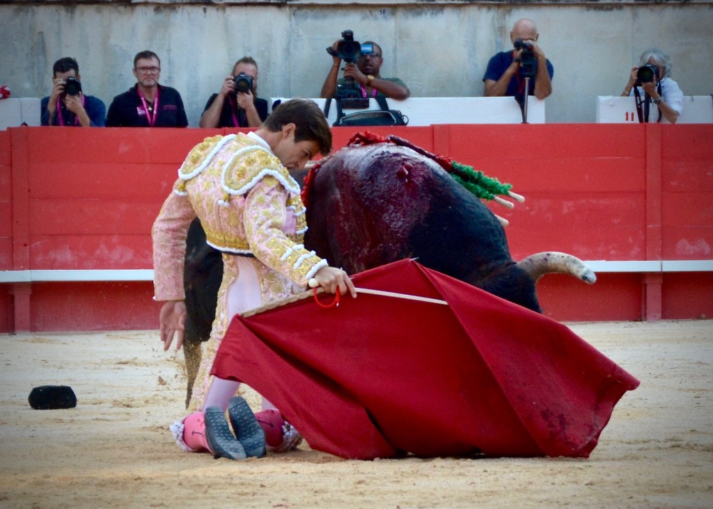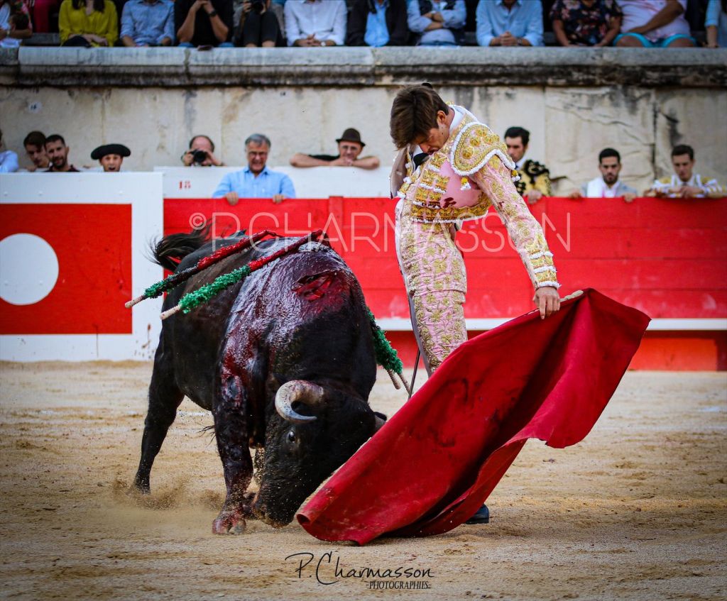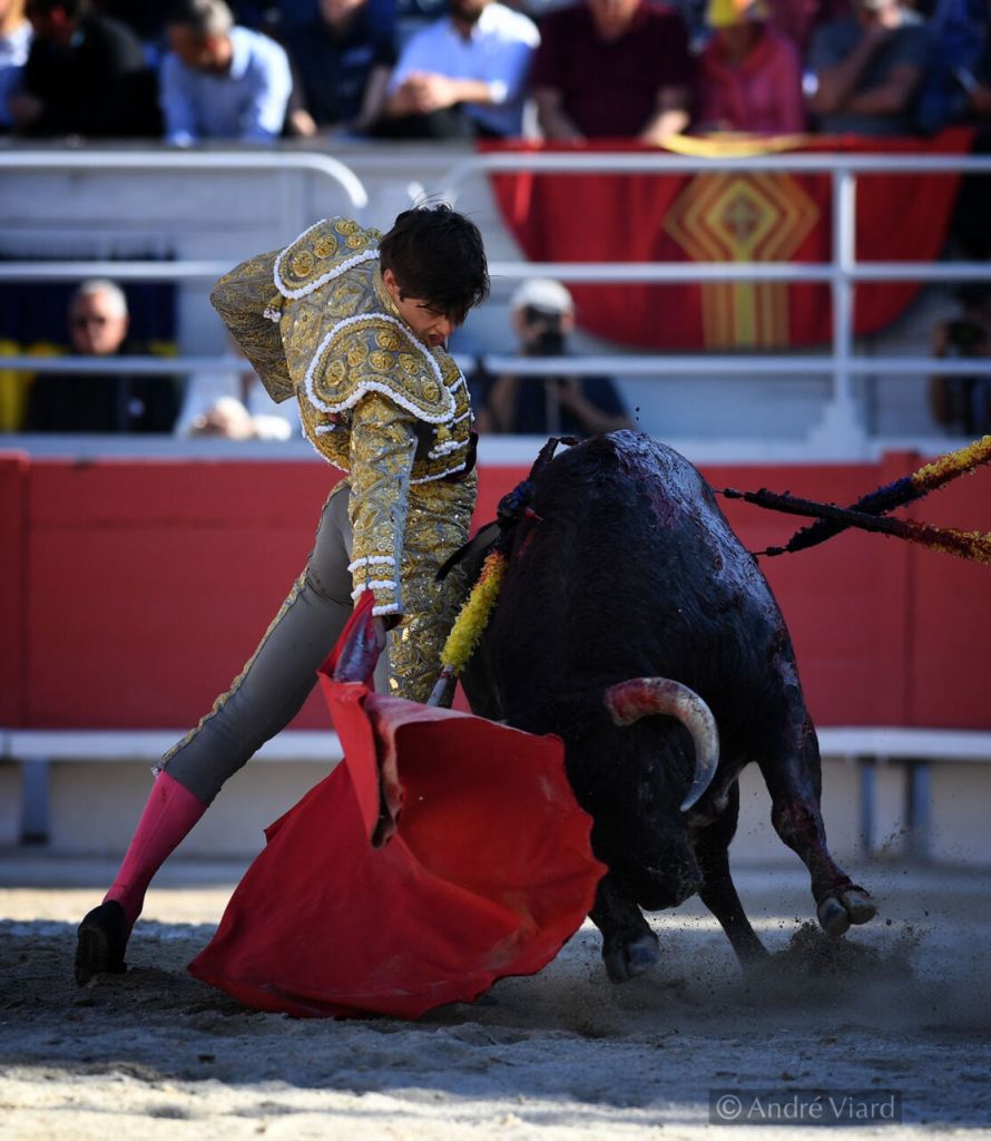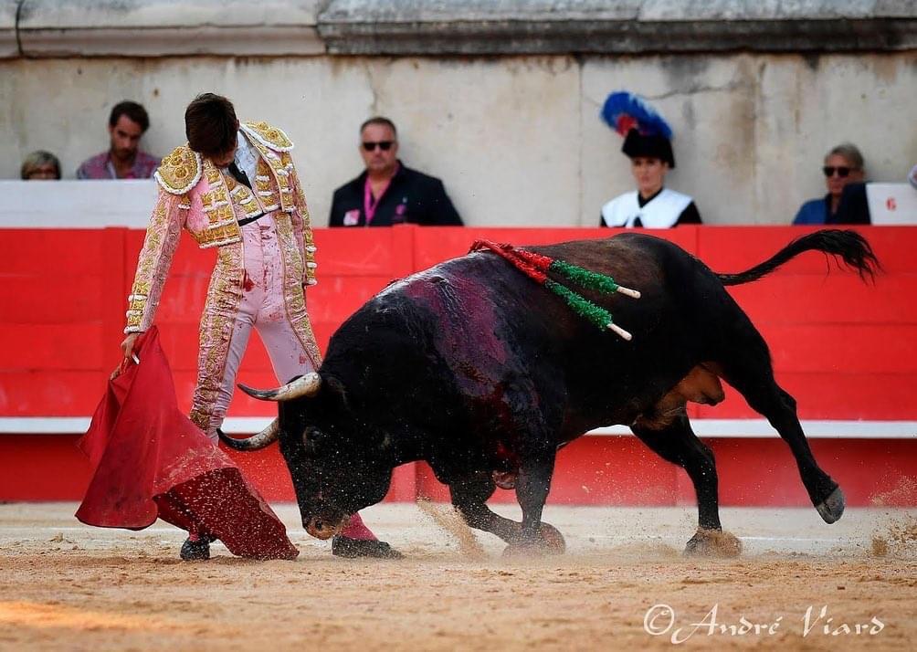 A peine 6 jours après son alternative, El Rafi la confirme dans ses Arènes de Nîmes en ouvrant le Porte des Consuls, pour la 3ème fois après l’avoir franchie en sans picador et en novillada formelle. Bien aidé par le sorteo, il réussit son entrée dans la cour des grands devant son public en réalisant 2 belles faenas superbement conclues à l’épée.