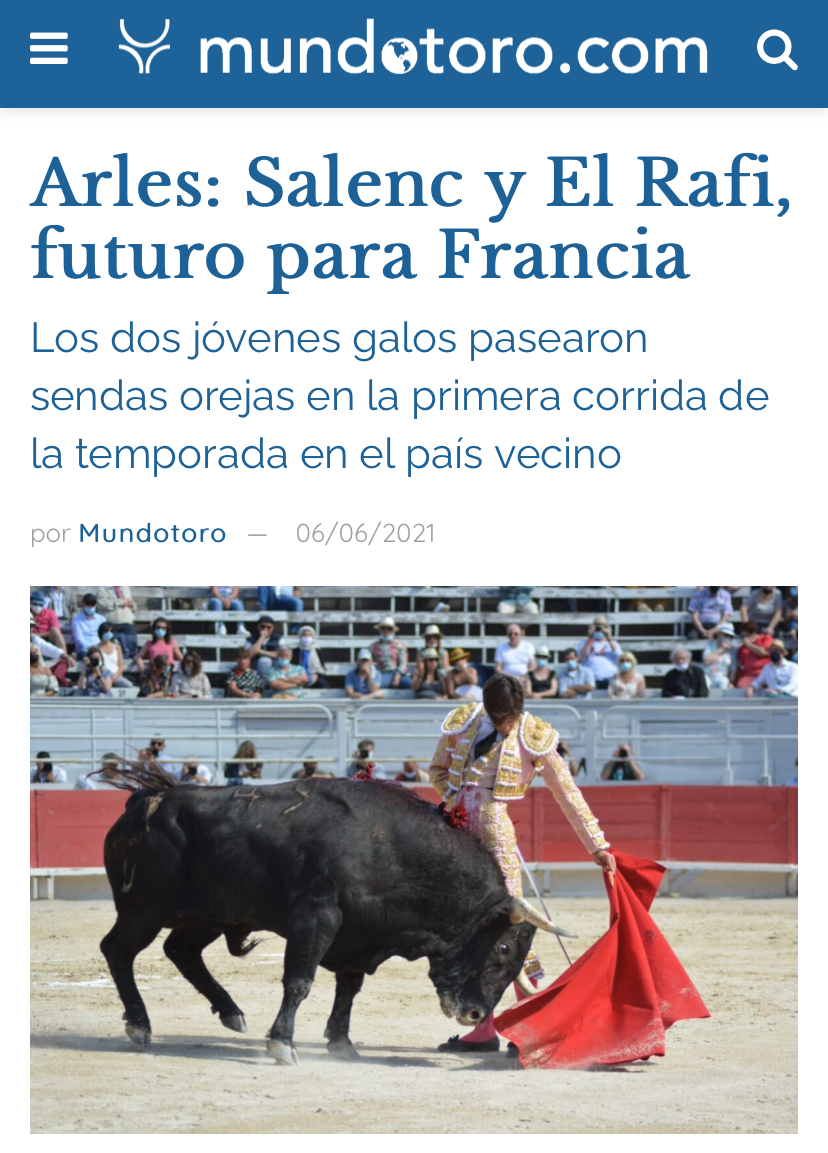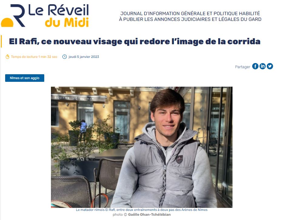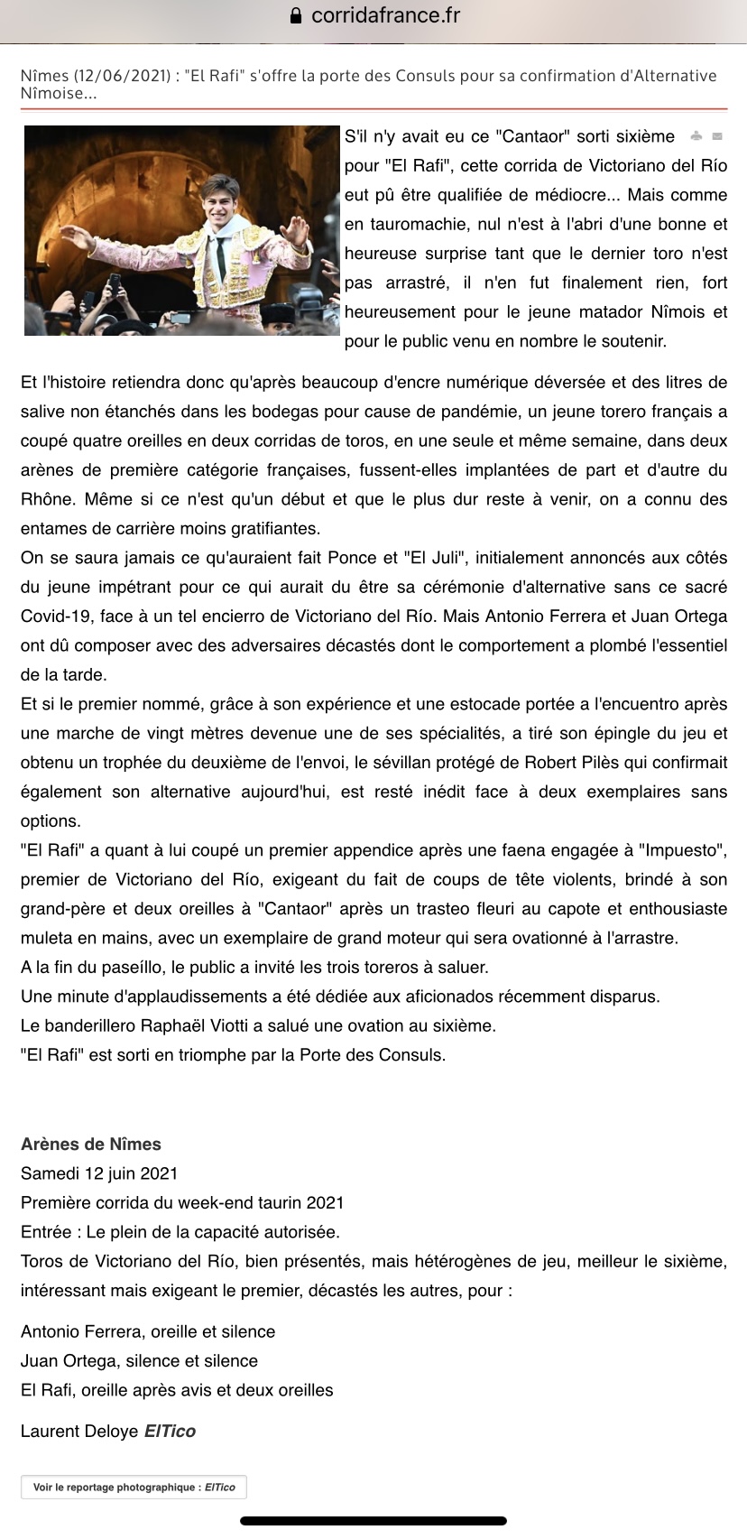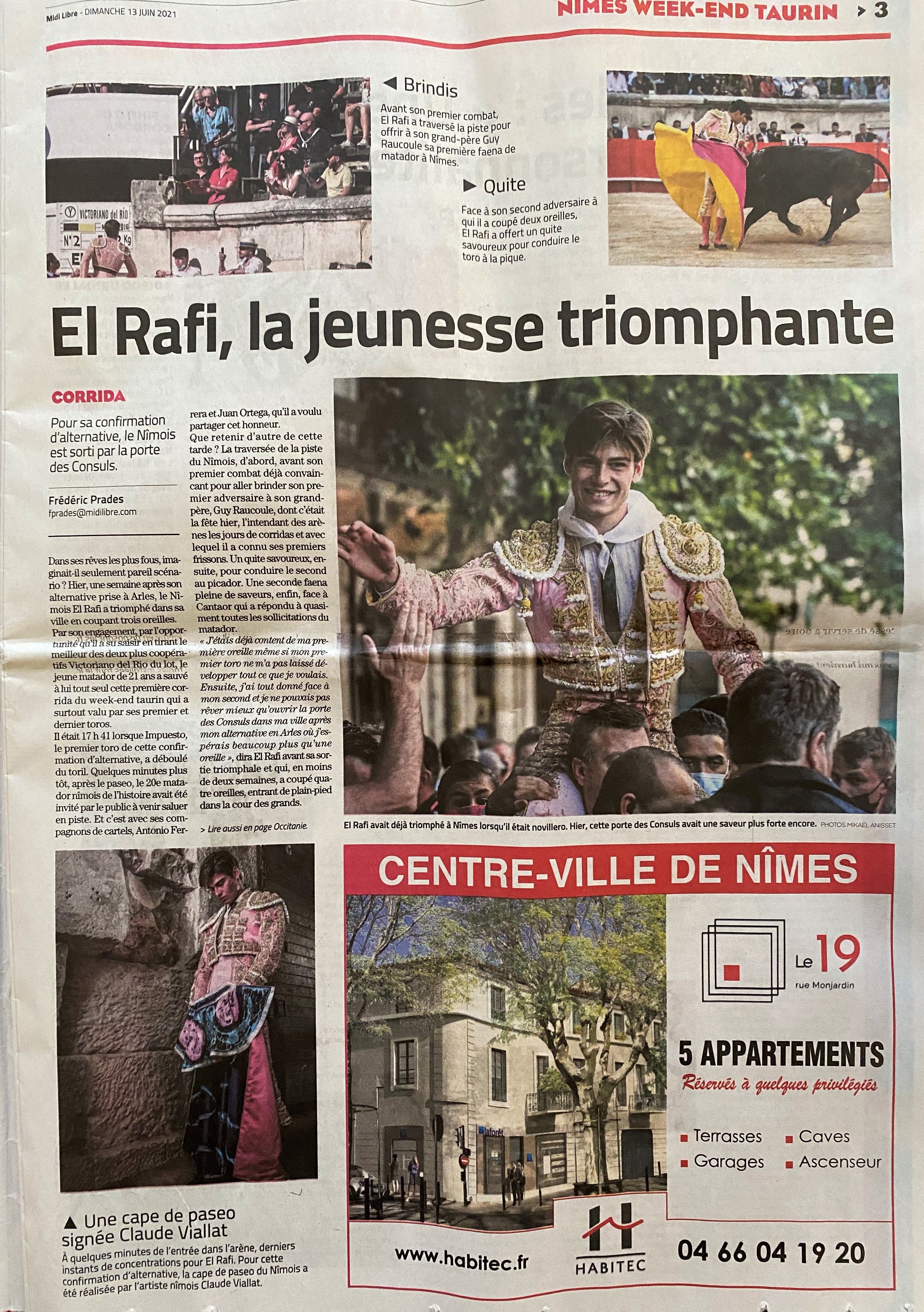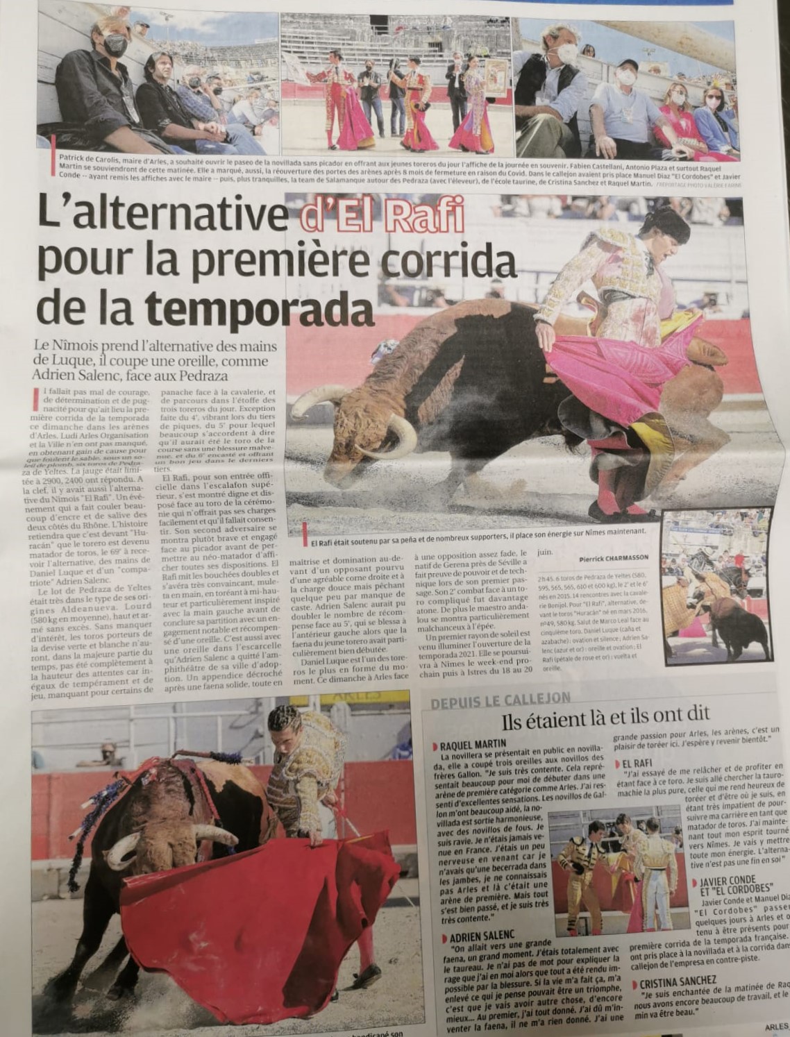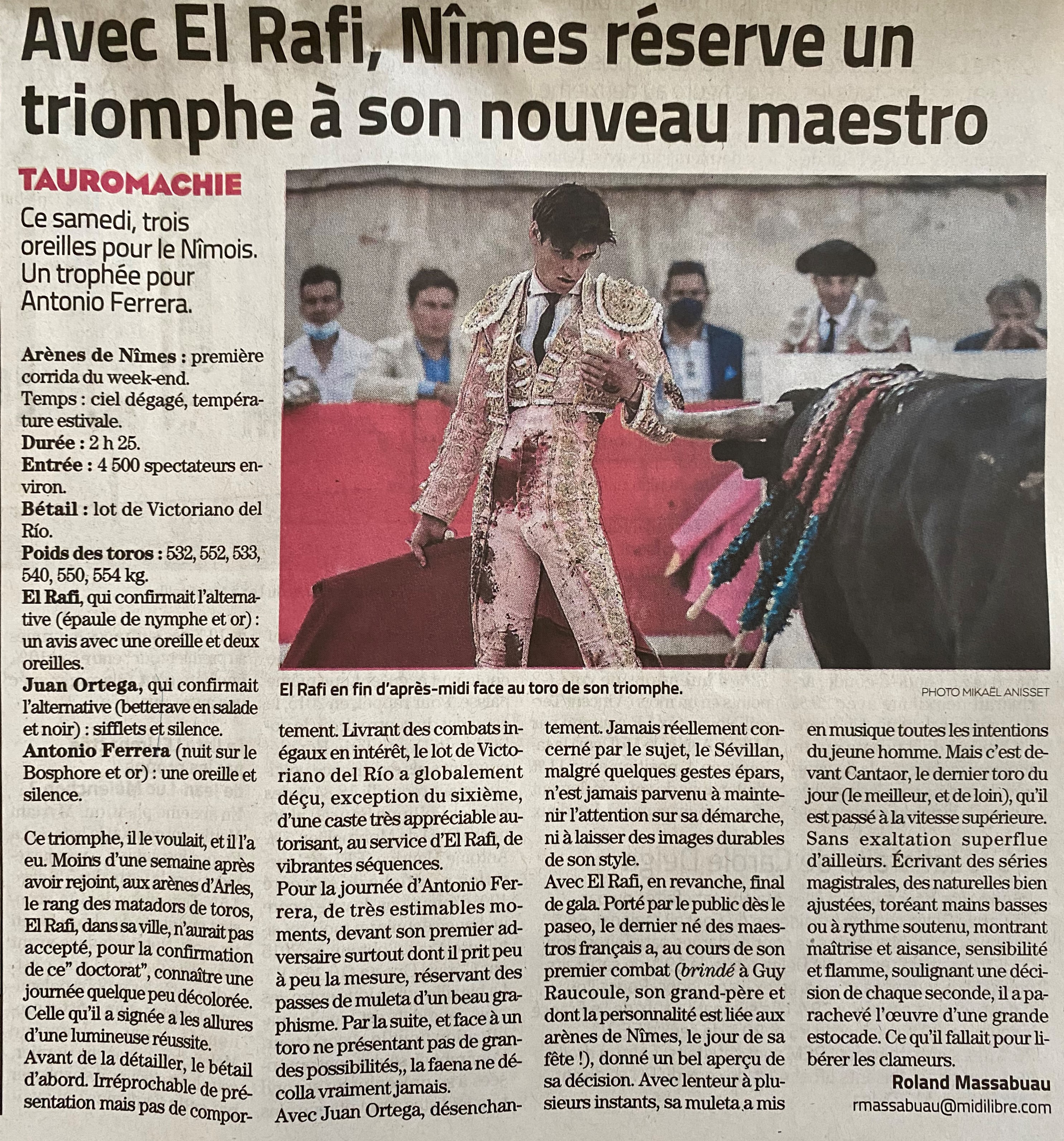 Et en version web : https://www.midilibre.fr/2021/04/13/lalternative-a-nimes-ou-a-arles-pour-le-matador-el-rafi-symboliquement-ca-change-tout-9484222.php