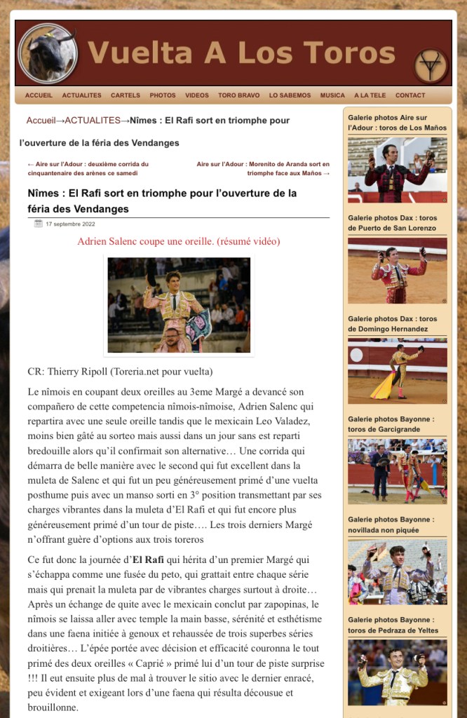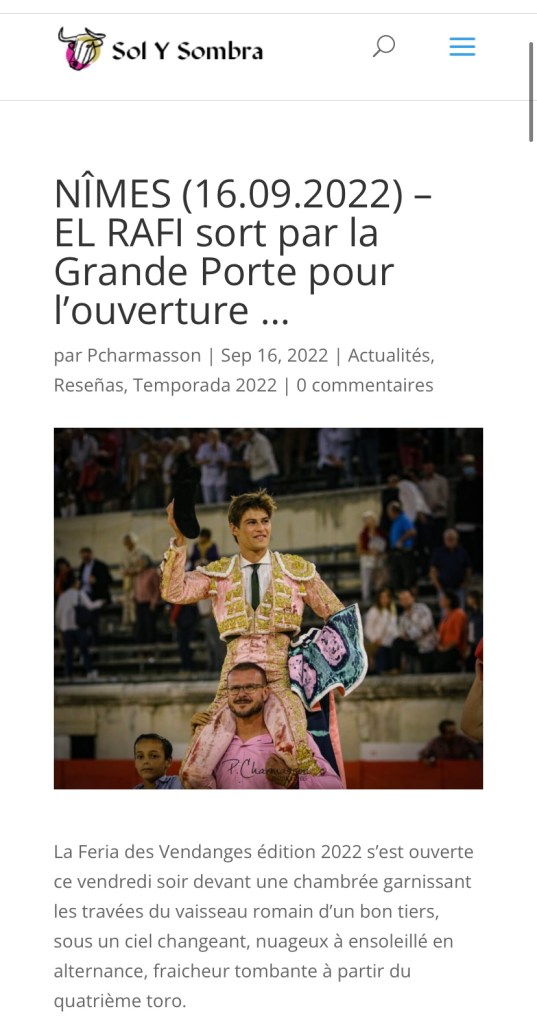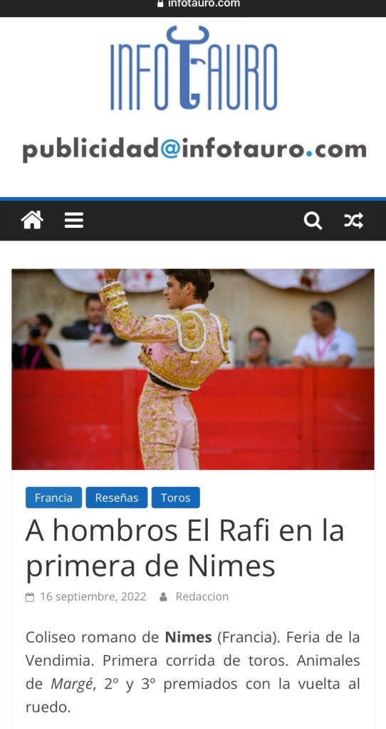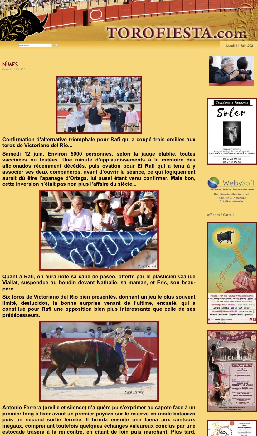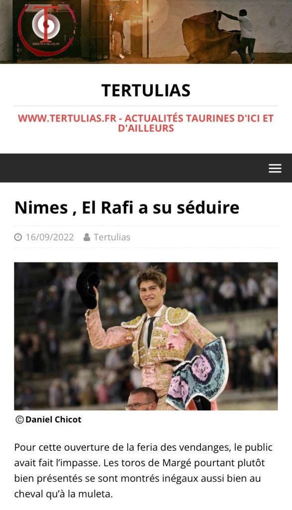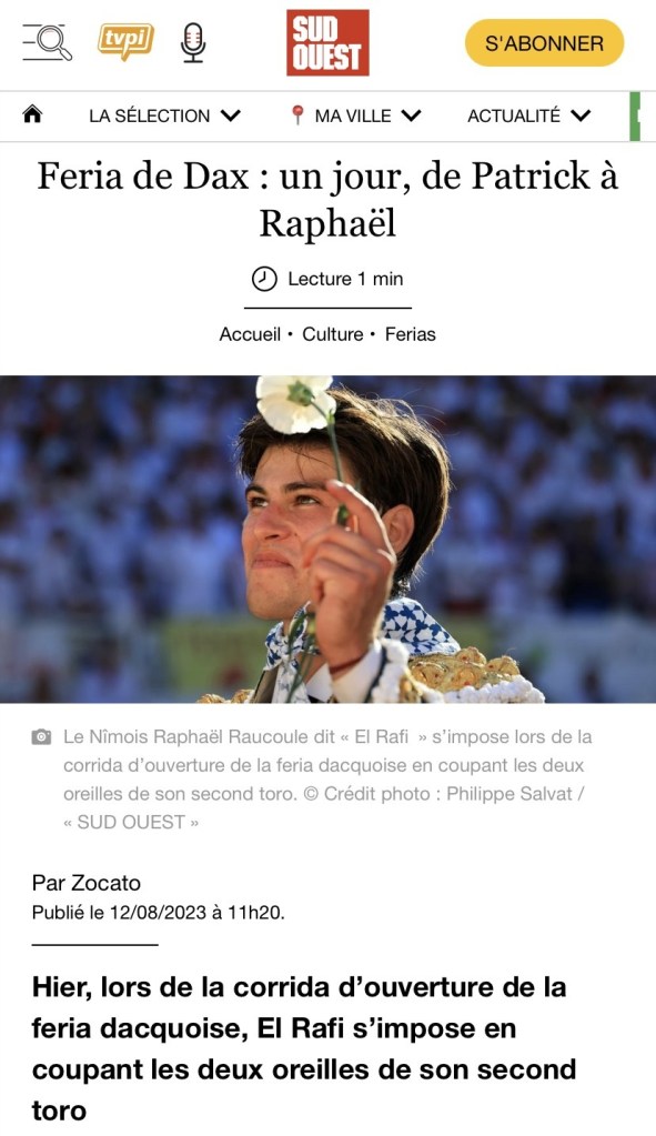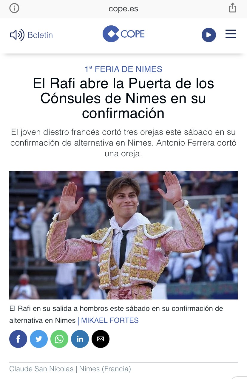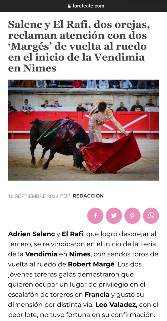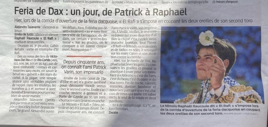 Et en version web : https://www.midilibre.fr/2021/04/13/lalternative-a-nimes-ou-a-arles-pour-le-matador-el-rafi-symboliquement-ca-change-tout-9484222.php
