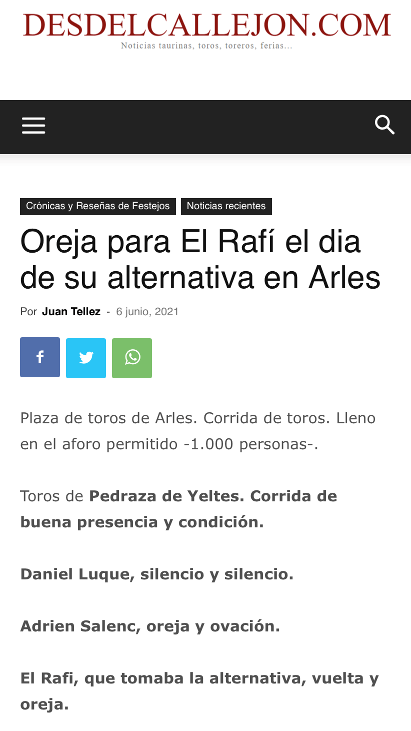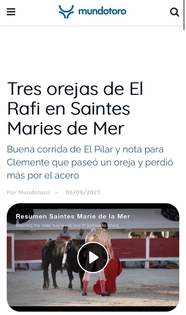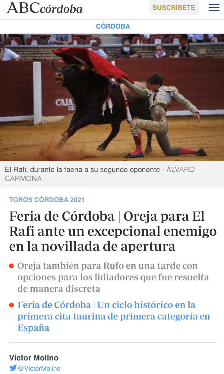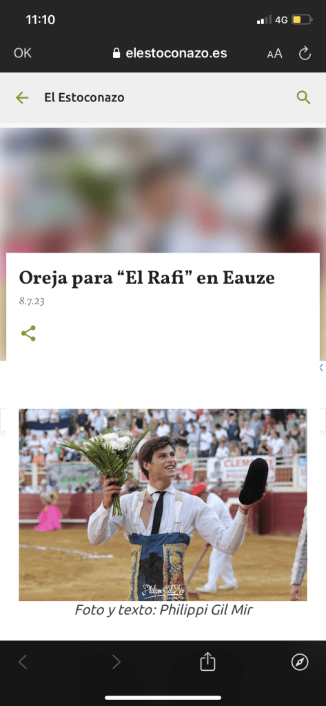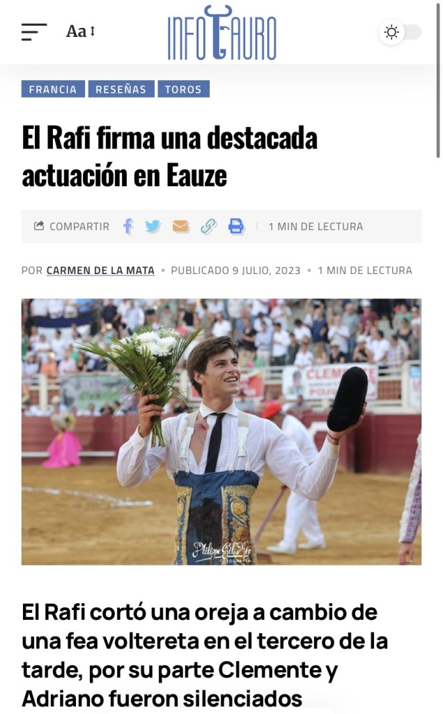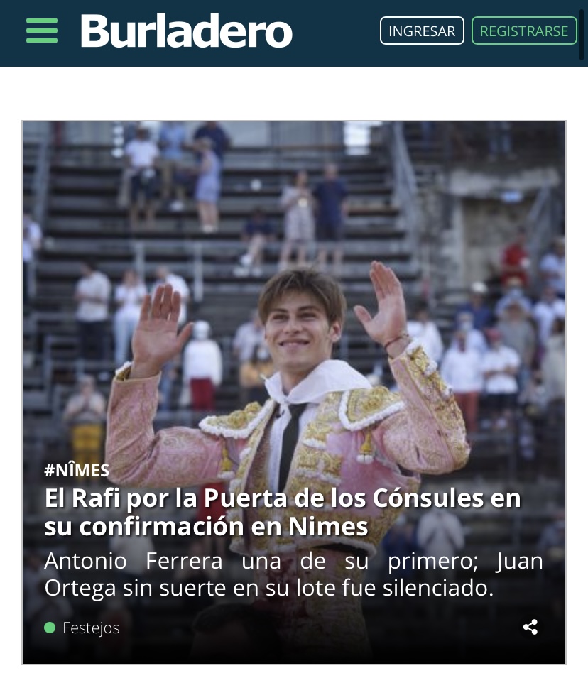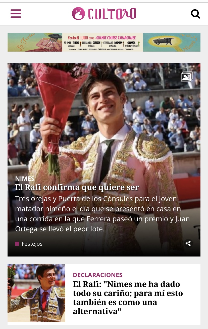 Et en version web : https://www.midilibre.fr/2021/04/13/lalternative-a-nimes-ou-a-arles-pour-le-matador-el-rafi-symboliquement-ca-change-tout-9484222.php