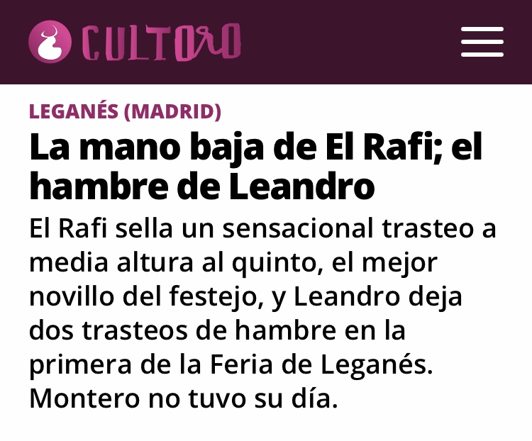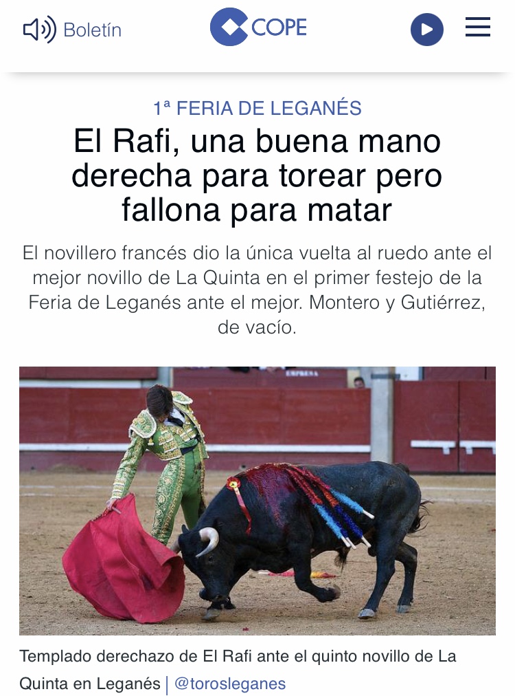 Revue de presse suite à la novillada de Leganés – Mai 2021