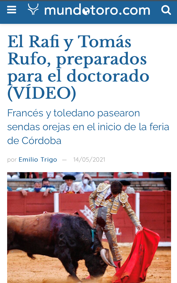 Revue de presse suite à la novillada de Cordoba – Mai 2021