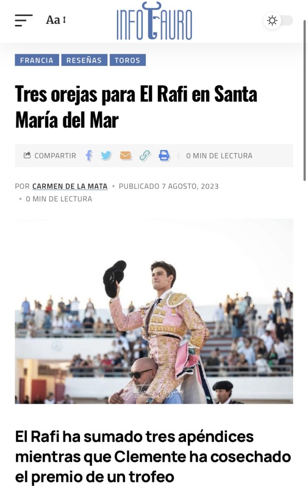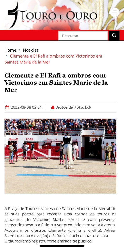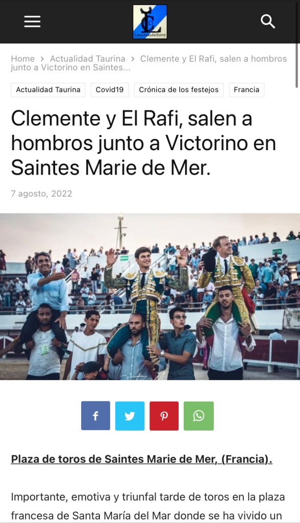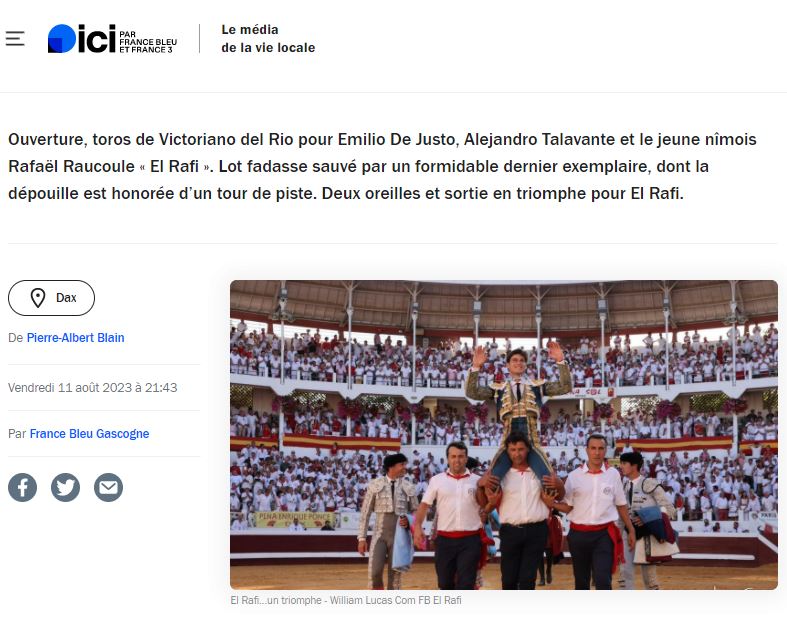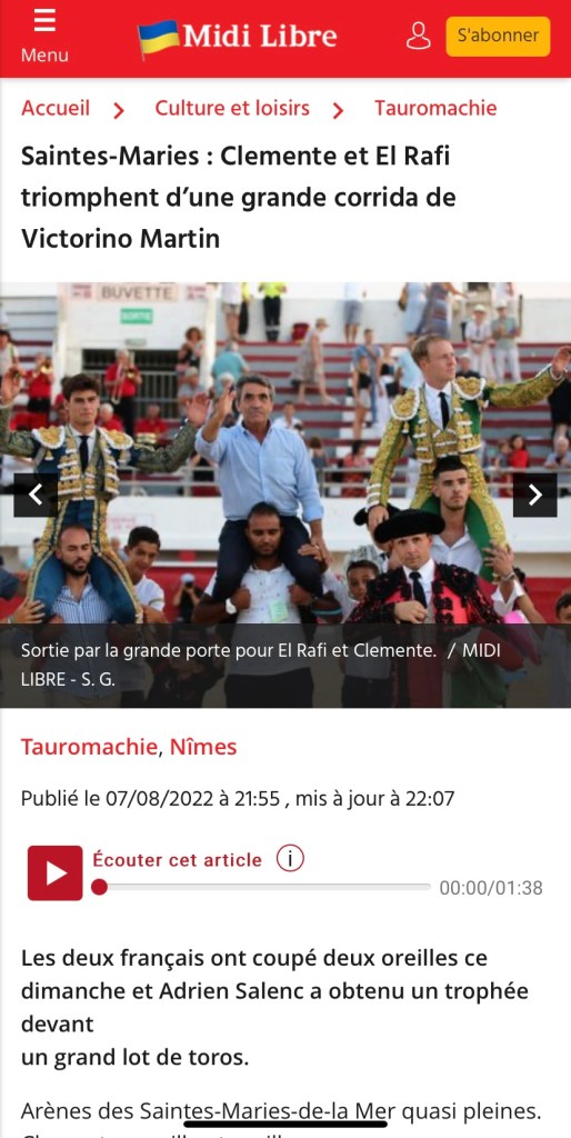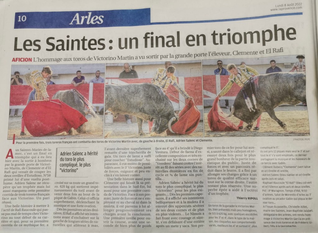 Revue de presse suite au triomphe face aux Victorino Martin – Août 2022